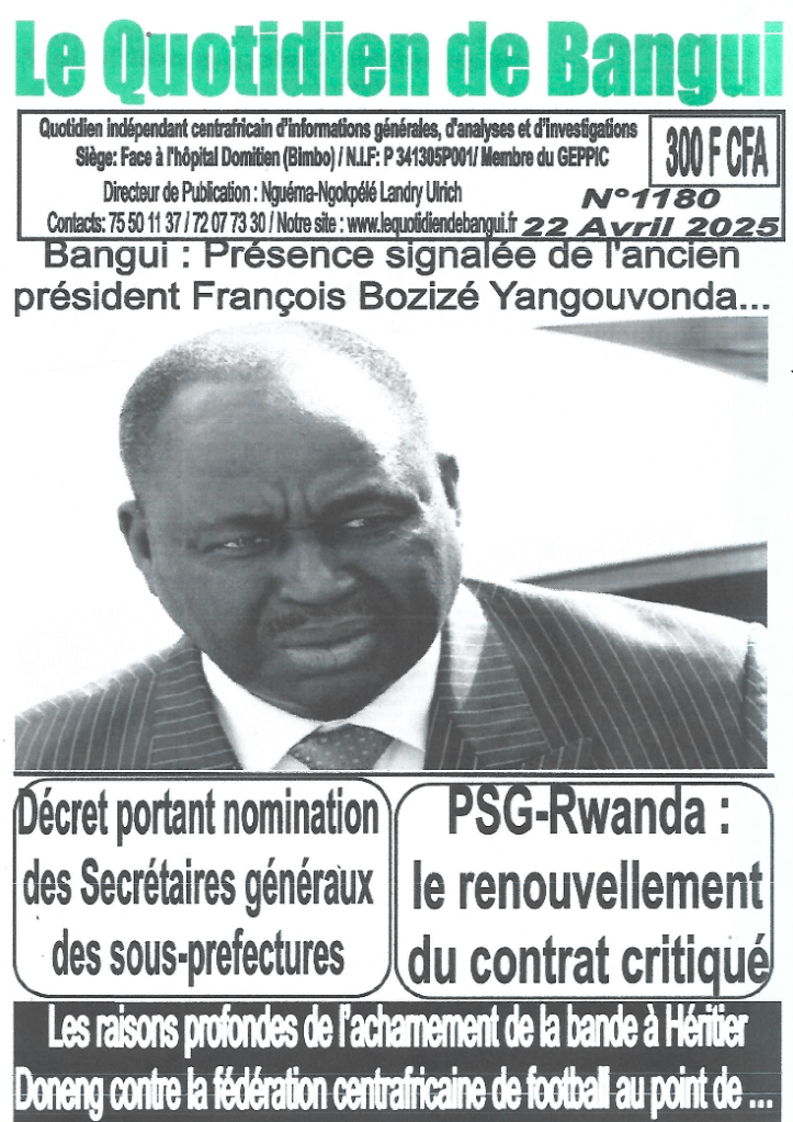 Dakar, May 21, 2025—The Committee to Protect Journalists calls on authorities in the Central African Republic to drop their prosecution of journalist Landry Ulrich Nguéma Ngokpélé, editor of the privately owned newspaper Le Quotidien de Bangui, who was arrested and jailed on May 8 over his newspaper’s report on the alleged return of former President François Bozizé to Bangui, the capital.