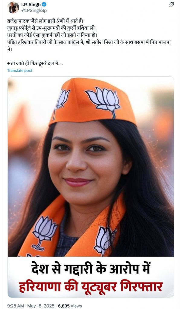 बीजेपी तुम्हारे साथ है..!!#JyotiMalhotraArrested pic.twitter.com/s4hqnNdrkz— ✼ ҉ ҉ ҉ ҉ 𝑺𝒉𝒊𝒁𝒖 ҉ ҉ ҉ ҉ ✼ (@Shizu____4evr) May 17, 2025