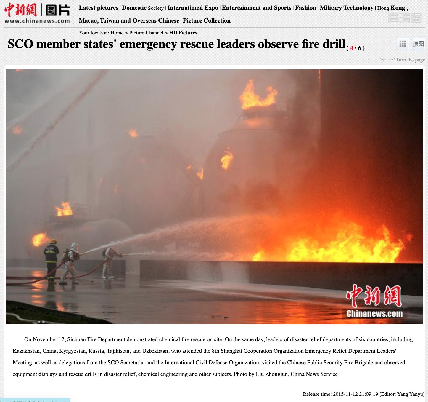Taking cue from the caption of the YouTube video, which said “Chinese chemical plant explosion,” keyword search led us to a post on Weibo—a Chinese social media platform—by the Sichuan Fire Department, from November 13, 2015.