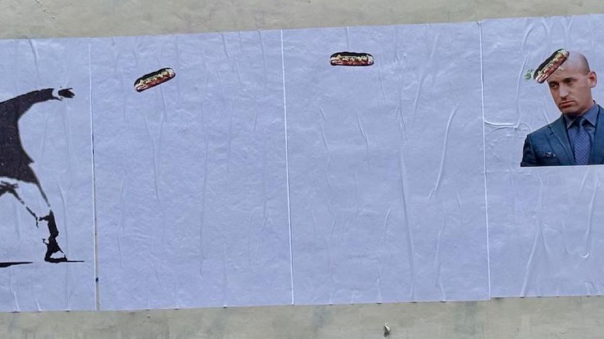 Enter, in his defense, Stephen Goebbels Voldemort Miller, who calls RFK Jr. “a crown jewel of this administration” and “one of the world’s foremost voices (and) experts on public health.” Also, the CDC lacked “credibility” and was run by “partisan bureaucrats.” America was a “killing field” before Trump launched his “liberation.” D.C. was “body after body after body.” Chicago has “shut down” their police, “handcuffed law enforcement.” Democrats should be “jumping up and down saying, ‘Thank you, President Trump, for saving our lives.'” The “Democrat Party (is) devoted exclusively to the defense of hardened criminals, gangbangers and illegal alien killers…(It) is not a political party. It is a domestic extremist organization.” And Sean Dunn, now charged with a misdemeanor, goes to court Sept. 4. For now, Banksy-inspired posters celebrating his tasty heroism bedeck D.C; its latest iteration hits Miller on his bald head. Let freedom ring.