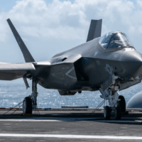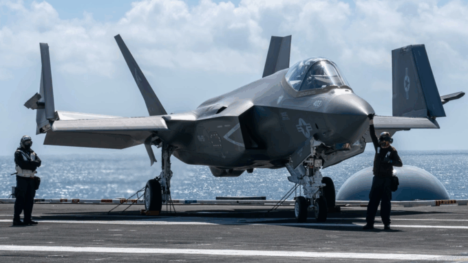 F-35 Lightning on the deck of the USS Carl Vinson. Photo: Seaman Derek Kelley, US Navy.