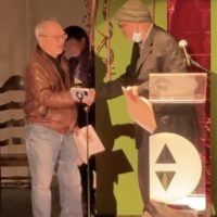 Ishmael Reed presenting William Gee Wong with the American Book Award for memoir. Photo: Tennessee Reed.