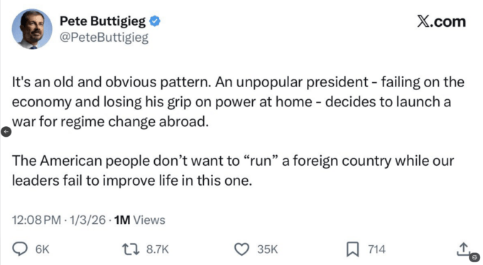 + According to Semafor, plans for the secret U.S. raid to bomb Caracas and kidnap Maduro and his wife were leaked to the Washington Post and New York Times before it happened, but both papers decided not to publish to protect U.S. troops. Thus, in true Hegsethian style, the elite press knew about the operation before Congress was briefed.