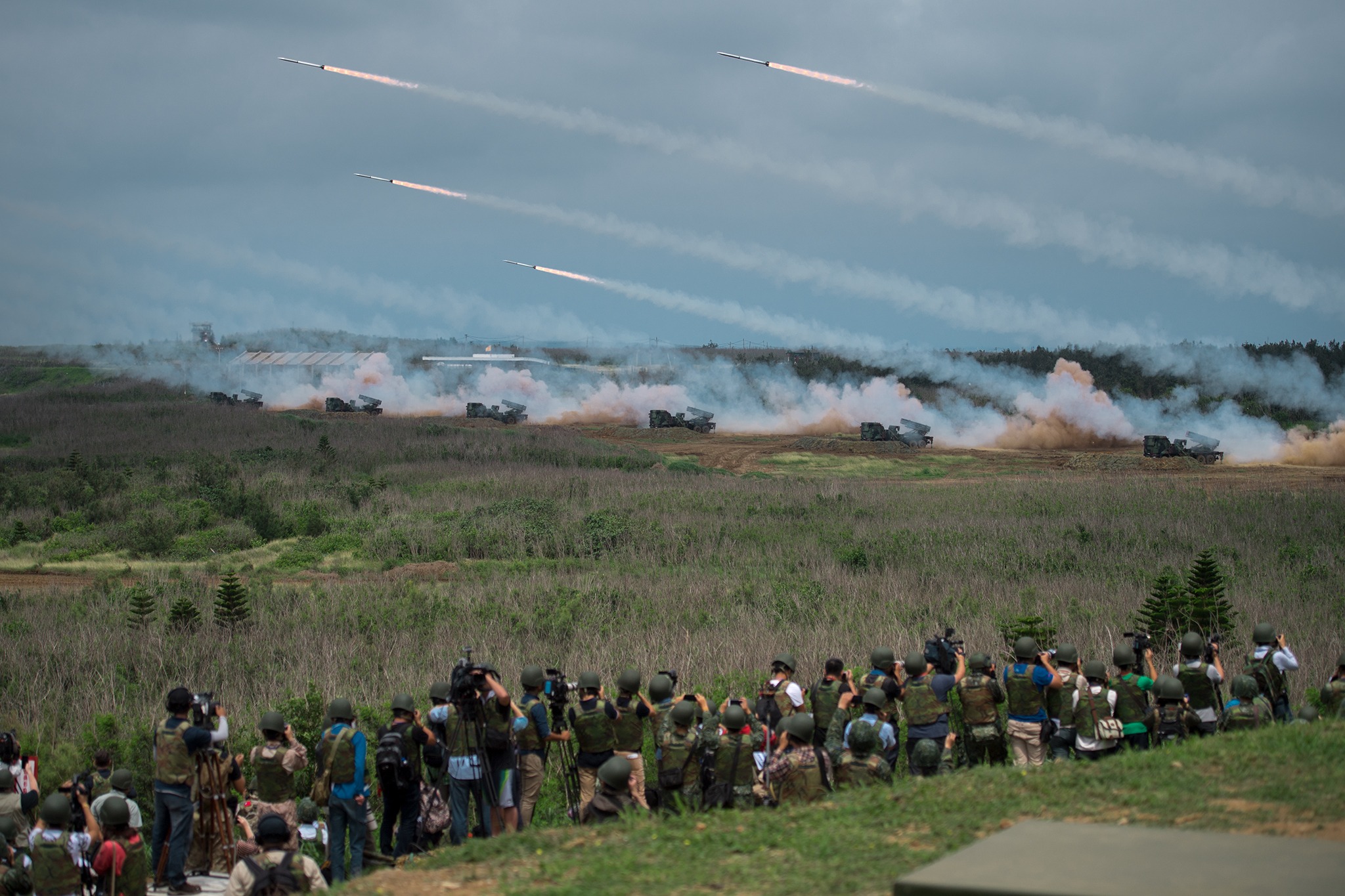 The Han Kuang Exercise is an annual military exercise by the ROC Armed Forces in preparation for a possible attack from the PRC. Photograph Source: 總統府 – 05.25 總統視導漢光33號演習 – CC BY 2.0
