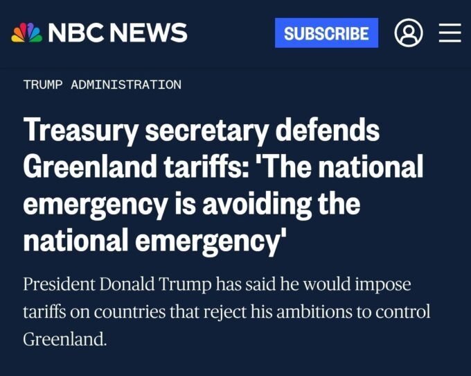 + Stephen Miller: “Denmark is a tiny country with a tiny economy and a tiny military. They cannot defend Greenland. They cannot control the territory of Greenland. Under every understanding of law that has existed about territorial control for 500 years. To control a territory, you have to be able to defend a territory, improve a territory, inhabit a territory. Denmark has failed on every single one of these tests.”