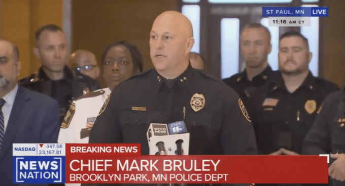 I’m Mark Bruley, police chief of Brooklyn Park, Minnesota. Behind me is a bunch of amazing police chiefs that are here to support a very short but very important message we want to share with you. What you won’t hear from any of us today is the rhetoric of “abolish ICE” or that there shouldn’t be immigration enforcement. The truth is, immigration enforcement is necessary for our national security and our local security. But how it’s done is extremely important. In fact, we have a long history of working exceptionally well with our federal partners, including ICE agents, and we have seen the best of them perform their job extremely well in the past. With that said, as recently as the last two weeks, we in the law enforcement community have been receiving endless complaints about civil rights violations in our streets from US citizens. What we’re hearing is that they are being stopped in traffic stops or on the street for no cause and they’re being forced to provide paperwork to determine if they are here legally. As this went on over the past two weeks, we started hearing from our police officers the same complaints, as they fell victim to this while off-duty. Every one of these individuals is a person of color who has had this happen to them. In Brooklyn Park, one particular officer who shared her story with me was stopped as she passed ICE going down the roadway. When they boxed her in, they demanded her paperwork. Being a US citizen, of course, she clearly didn’t have any. paperwork. When she became concerned about the rhetoric and the way she was being treated, she pulled out her phone in an attempt to record the incident and the phone was knocked out of her hand to prevent her from recording it. The officers had their guns drawn during the interaction and the officer became so concerned that she had to identify herself as a Brooklyn Park police officer in the hope of slowing the incident and deescalating the incident down. Then, the agents immediately left after hearing this, making no other comments, offering no apologies. Just got in the vehicles and left. I wish I could tell you that this was an isolated incident. In fact, many of the chiefs standing behind me have similar incidents with their off-duty officers. This isn’t just important because it happened to off-duty police officers. But what it did do is that we know our officers know what the Constitution is, they know what right and wrong is and they know when people are being targeted. And that’s what they were. If it happens to our officers, it pains me to think of how many of our community members are falling victim to this every day. It has to stop.