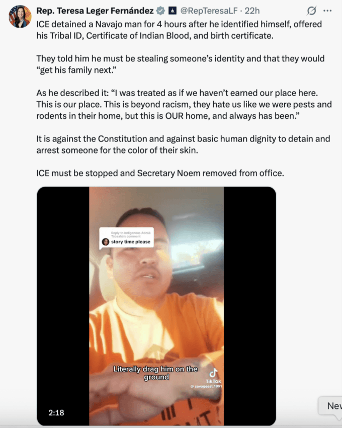 + First they came for the Oglala, now the Navajo…(There was a very good reason Kristi Noem was banned from setting foot on any Lakota reservation in South Dakota when she was governor.)